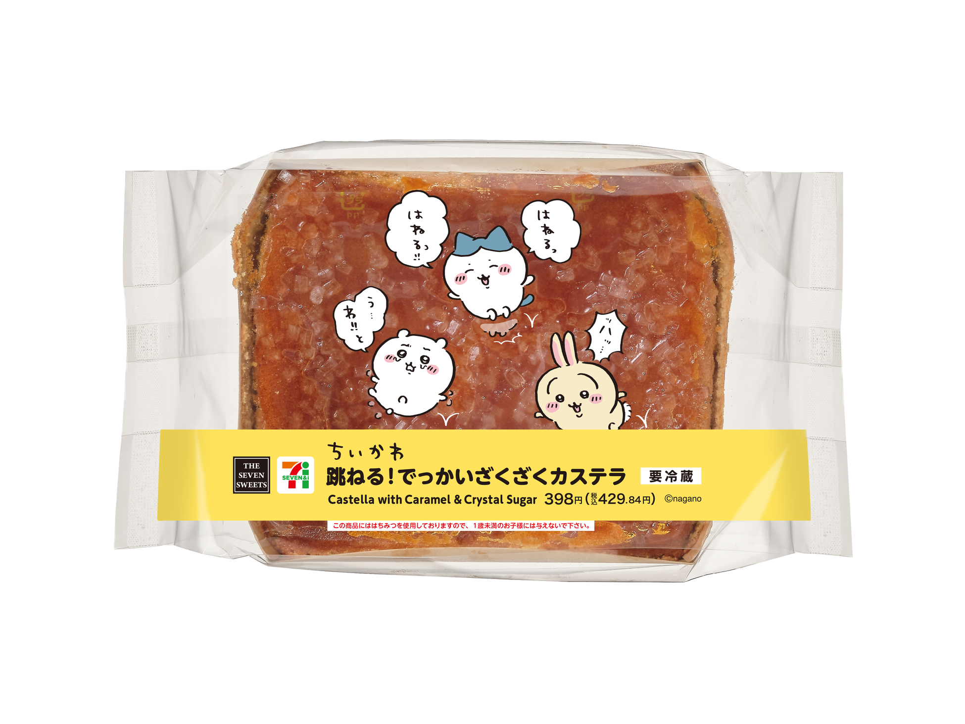 ちいかわたちが飛び跳ねていたザラメ付きカステラをイメージした商品。ザラメのざくざく食感としっとりとした生地のコントラストが楽しめます。