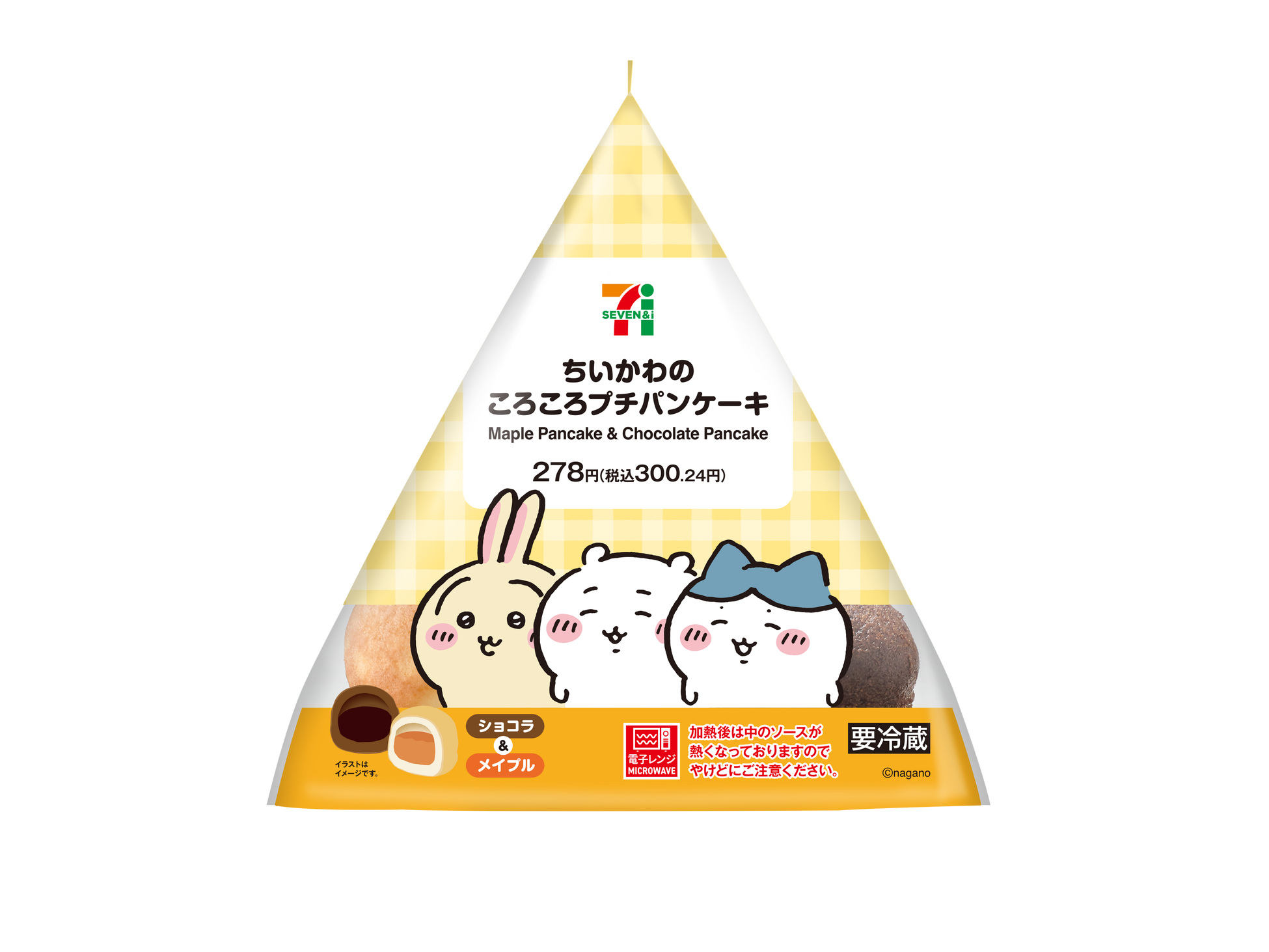 ちいかわとうさぎが食べていた巨大なホットケーキをイメージし、食べやすいサイズにした商品。ショコラとメイプルの2つの味が楽しめる甘みの詰まったパンケーキになりました。
