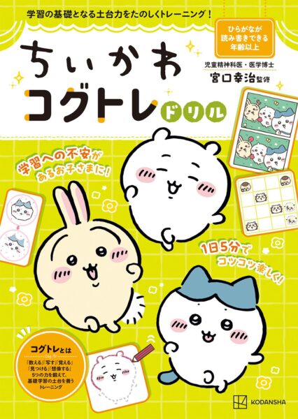 『コグトレ』とは、認知機能に着目した包括的支援プログラムのことで、「数える」「写す」「覚える」「見つける」「想像する」という5つの力を鍛えながら、学習の土台となる認知機能を養うトレーニングで、すでに国内の多くの学校で導入されているが、今回の書籍では特に子どもが楽しめるよう、「ちいかわ」をテーマにアレンジされています。