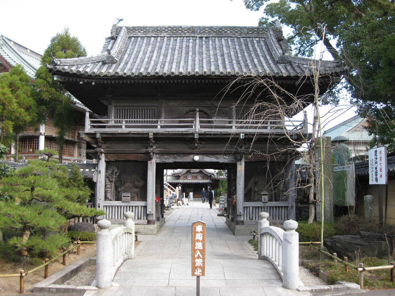 815年、弘法大師が訪れ本尊を拝み、新たに大きな像を彫造し、その胎内に行基菩薩が彫った本尊を納め、寺名を「立江寺」としました。かつては景勝地に位置し七堂伽藍(しちどうがらん)を備えた大寺でしたが、「天正の兵火」で壊滅しました。しかし、本尊は難を逃れ、阿波藩主・蜂須賀家政公の帰依を受けて現在地に再建されました。