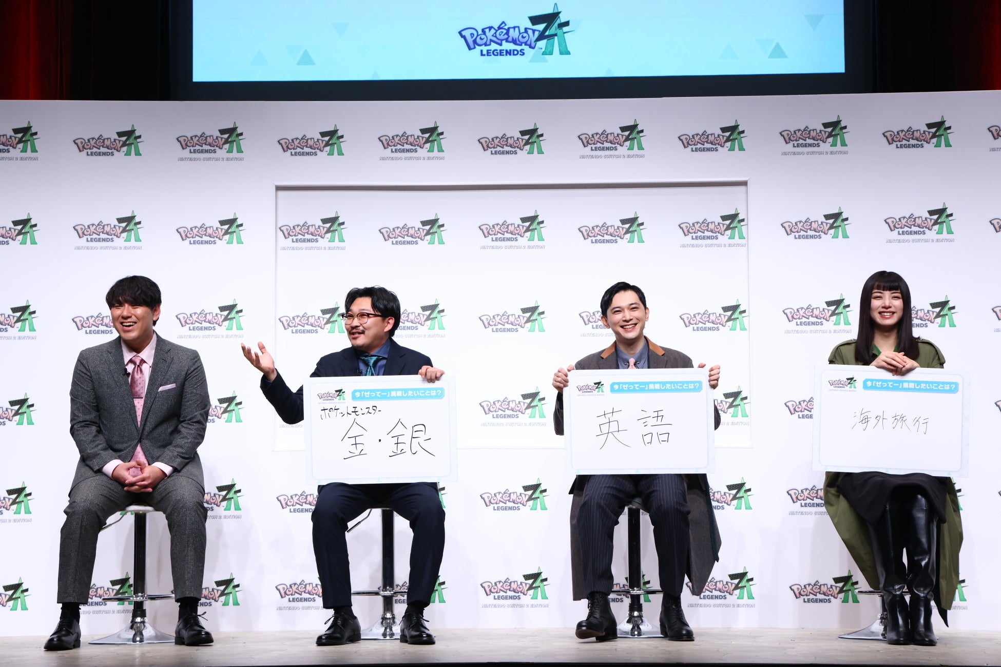 トーク後半には『Pokémon LEGENDS Z-A(ゼットエー)』にちなんだ「ぜってー挑戦したいこと」についてのクロストークを実施。会場は盛り上がりを見せました。吉沢さんは「英語」とフリップを出すと、「いま役で英語の教師をやっていて、これを機にできるようになりたい」と語りました。池田さんは「海外旅行」と回答し、伊藤さんが「『ポケットモンスター金・銀』」と答え、「『ポケモンレジェンズ ゼットエー』まで順番に追いついていきたい」明かすと、会場から笑いが起きました。